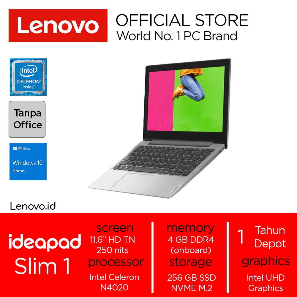 Produk Lenovo IdeaPad Slim 1 05ID Celeron N4020 Win10 4GB 256GB SSD 11.6" HD TN Integrated Intel Laptop Mungil Terjangkau 11inch 11IGL05 81VT0005ID Platinum Grey ini harganya adalah Rp. 5.579.000,00 dan saat ini sedang Diskon 10%, Produk ini sendiri saat saya tulis Artikel ini sudah dilihat sebanyak 35974 kali dan sudah disukai sebanyak 561 kali.