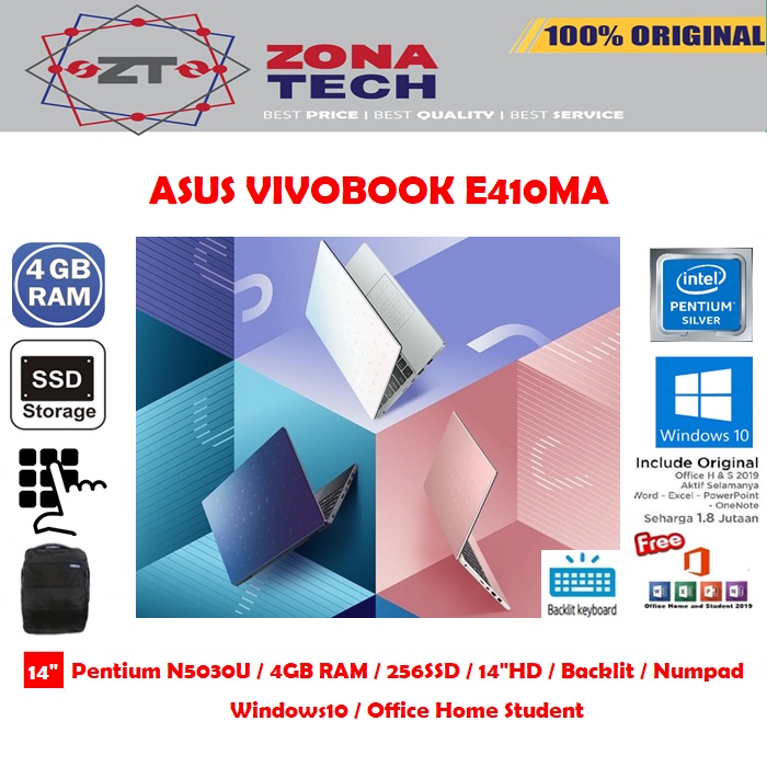 Alasan kenapa harus beli LAPTOP ASUS VIVOBOOK E410MA - INTEL PENTIUM N5030 - 4GB - 256GB SSD - BACKLIT - 14"HD - W10 - OFFICE sekarang