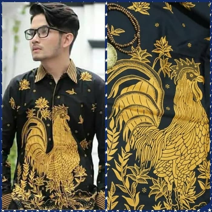 Kemeja Batik Lengan Panjang Motif Ayam Jago emas Berkualitas