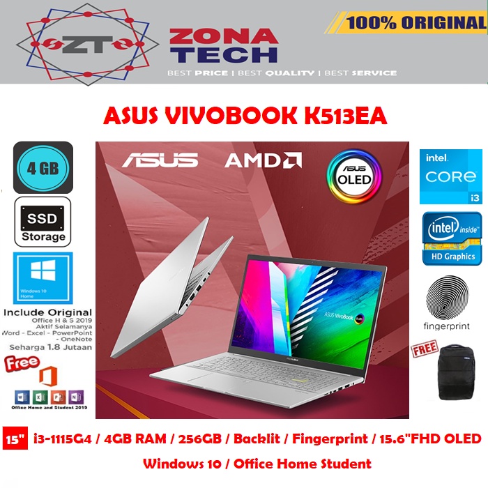 Kelebihan - Kelebihan membeli LAPTOP ASUS VIVOBOOK K513EA - i3-1115G4 - 4GB - 256GB SSD - BACKLIT KB - FINGERPRINT - 15.6""FHD OLED - WIN10 - OFFICE di Toko ini